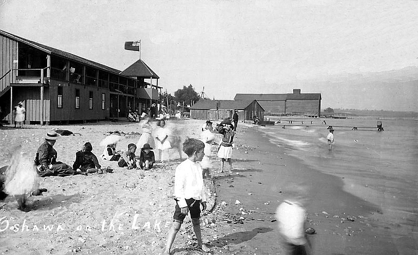 A nice place is Oshawa-on-the-Lake for picnics. Spacious rooms for eating and amusements, hot and cold water provided by Mr. Henry, the street cars going up town and back every now and then, and on the blue waters are seen scows loaded to the brim with stones to fill in some breakwater, or pleasure boats flitting here and there with their happy occupants, which all add life and beauty to the scene.