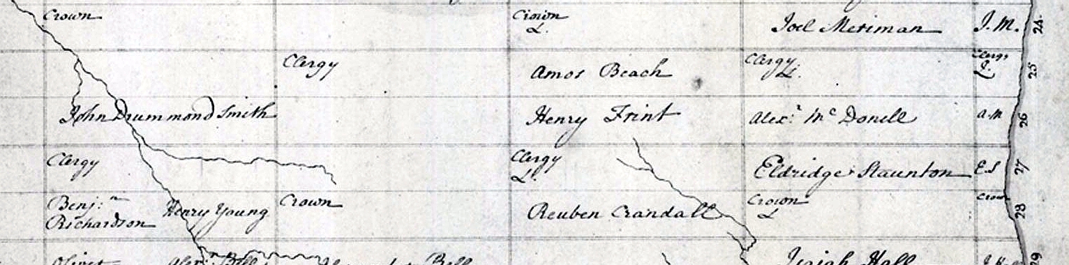 Captain James Richardson Lot 1-1stConcession John Spencer 2-1st " Surfernus Dysert 3-1st " Captain Benjamin Richardson 4-1st " James Bettis 6-1st " Jeremiah Scripture 6-1st " James Bettis -1931 7-1st " Jeremiah Scripture 9-1st " Lauson Bostwick 10-1st " Oliver Campbell 12-1st " William Campbell 13-1st " John Campbell 14-1st " Stephen Campbell 16-1st " *Timothy Obryant 19-1st " (*William Obryon-1931) William Brunson 20-1st " David Turner, Junior 22-1st " David Turner 23-1st " William Yates 24-1st " Joel Merriman 24-1st " Barnabas McKeyes 26-1st " *Aldridge Stanton 27-1st " (*Eldridge Stanton - 1931) Peris Cooper 29-1st " Isaiah Hall 29-1st " *Aaron Wallice 30-1st " (*Aaron Wallace-1931) John Ogden 32-1st " John Ward 33-1st " Joseph Keeler 35-1st " John L. Roberts Lot1-2nd Concession *Timothy Olcott 1-2nd " (* Lot 10 5th Con - 1931) *John Beecher 2-2nd " (*John Belcher-1931) Obediah Simson 4-2nd " John Turner 5-2nd " John Turner (1931) 7-2nd " John Bartley 8-2nd " Arnon Ives 19-2nd " Martin Frint 21-2nd " Samuel Sherwood 22-2nd " John Frint 22-2nd " John Mix 23-2nd " Amos Beach 25-2nd " Henry Frint 26-2nd " *Rueben Crandale 28-2nd " (*Rueben Crandell-1931) *Palmer Crandale 29-2nd " (*Palmer Crandell -1931) George Palmer 31-2nd " *Nathaniel Gaffield 32-2nd " (*Nathaniel Gosfield - 1931) John McKirman 34-2nd " Joseph Keeler 35-2nd " Elisha Bristol Lot 17-3rd (1st) Concession Elisha Alger 33-3rd " Enoch Weight 2-4th Concession Cyrus Richmond 4-4th " Sylvester Richmond 5-4th " John Simson 7-4th " Jason Yearns 8-4th " Gabrum Sprung 10-4th " John Dowling 22-4th " Walter Worden 23-4th " John Dowling 31-4th " Timothy Olcott Lot 10-5th Concession Semion Winn 16-5th " Abraham Winn 17-5th " Joseph Winn 18-5th " John Sickler 19-5th " William Clark 20-5th " John Heaviland Lot 18-6th Concession