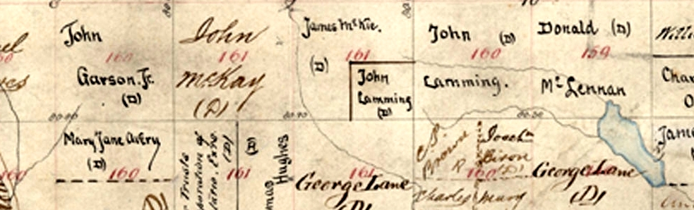 Hodgins and Anderson Townships Pioneer Settler Property Map Hodgins and Anderson Townships pioneer family land grants, patents and locations