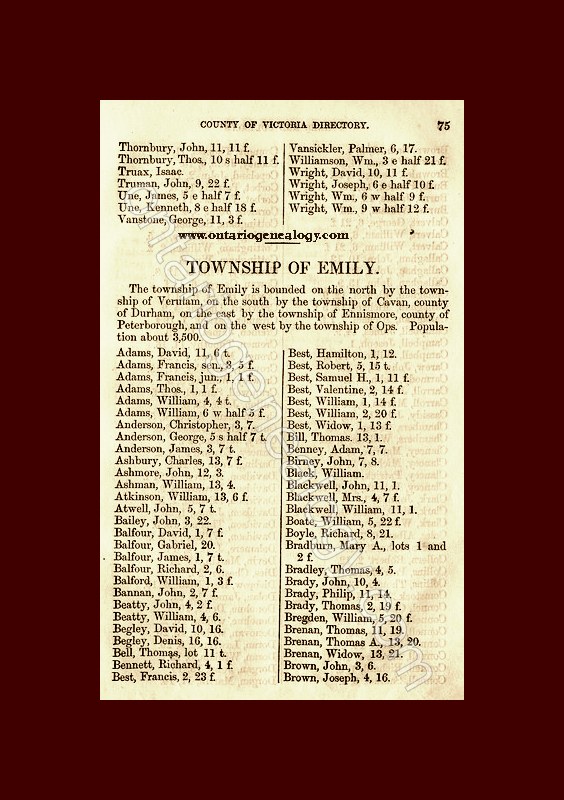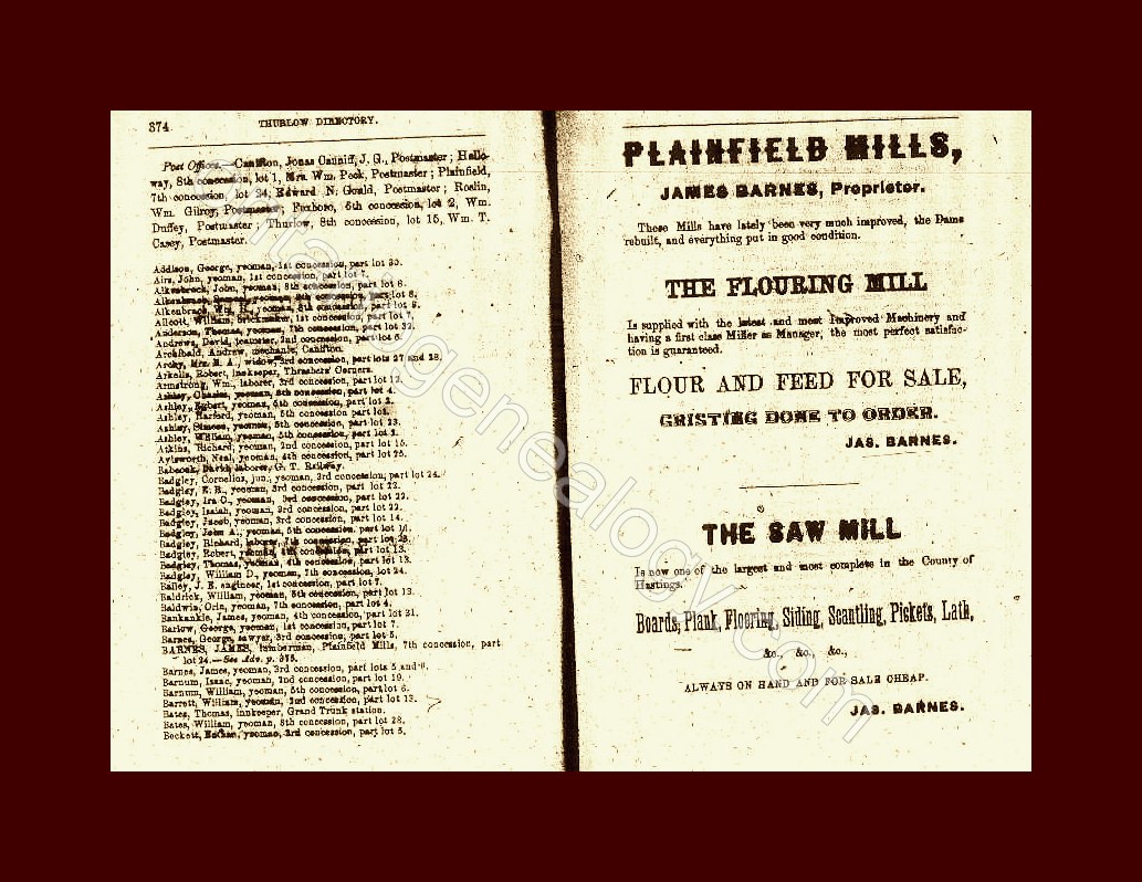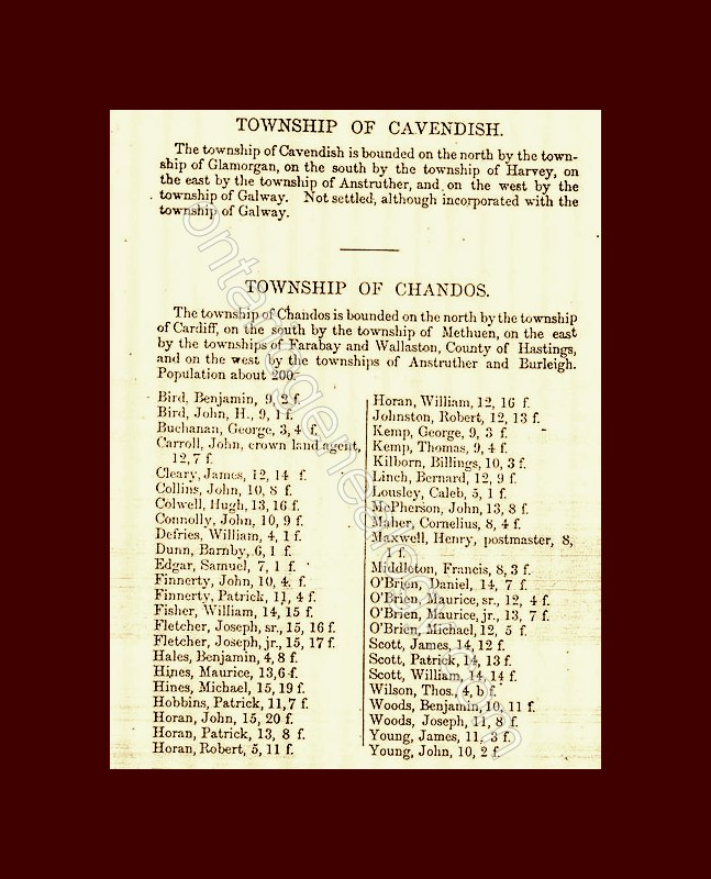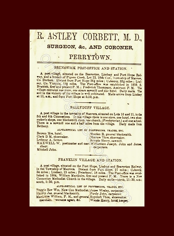 Sample page from 1871 Peterborough and Haliburton County Directory